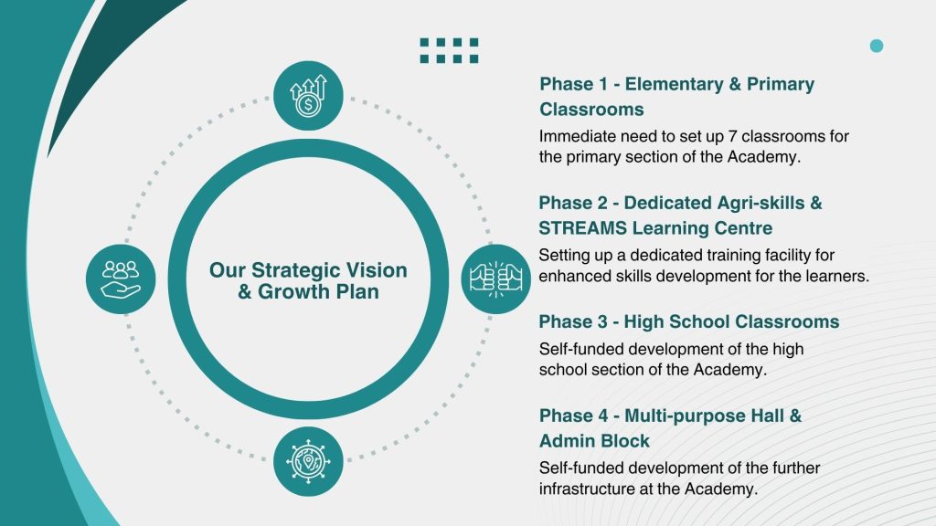 Our Infrastructure Development Plan is structured into four phases, with our immediate priority being the construction of Elementary and Primary School Classrooms.